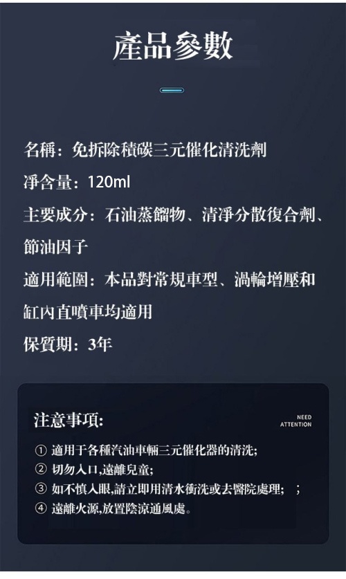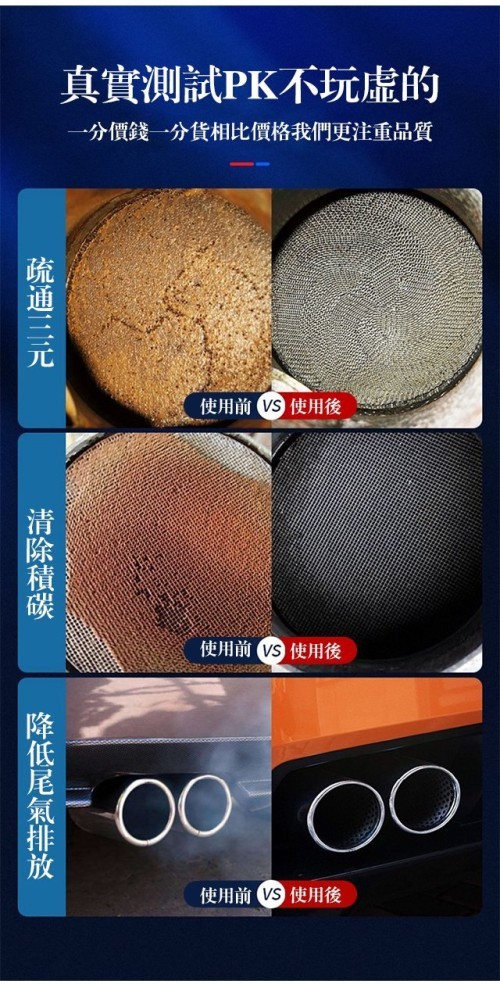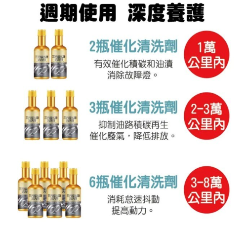 5分鐘前免拆除積碳 【黃金三元催化清洗劑】淨化尾氣、減故障燈、清除積碳、降低油耗、動力更加強勁,輕鬆通過年檢 - 五萬公裡內【節省油耗】三元催化清洗劑10瓶 NT$1198