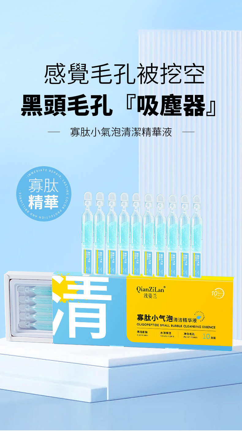 12分鐘前【三分鐘黑頭粉刺自動浮出】寡肽小氣泡清潔精華露 發泡清潔毛孔 去黑頭粉刺 收縮細嫩毛孔 - 體驗組【一盒 10隻】-NT$998